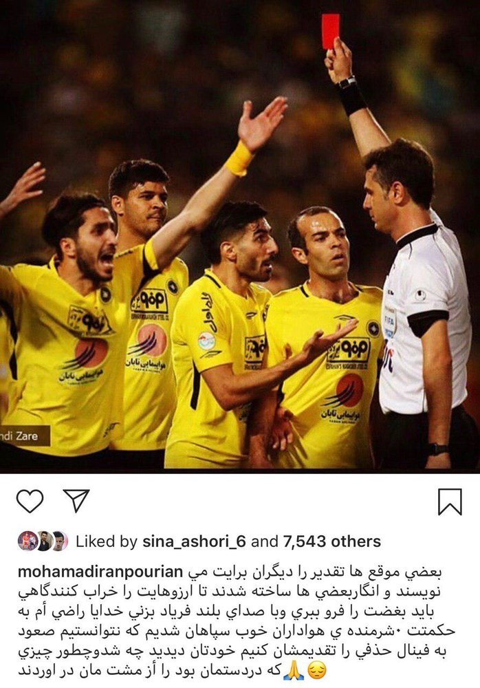 محمد ایرانپوریان در صفحه رسمی خود در اینستاگرام توضیحاتی درباره دیدار سپاهان و پرسپولیس ارائه کرد.