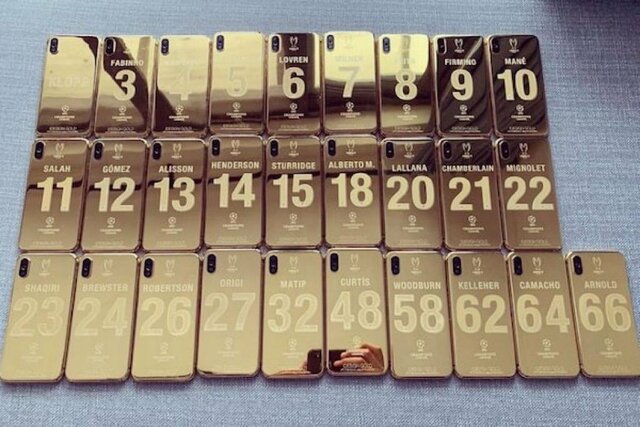 باشگاه لیورپول به هر بازیکن این تیم به مناسبت قهرمانی در لیگ قهرمانان اروپا یک گوشی آیفون X با روکش طلا اهدا کرد. بر روی این روکشهای گوشی همراه، نام بازیکن و شماره آنها درج شده است.