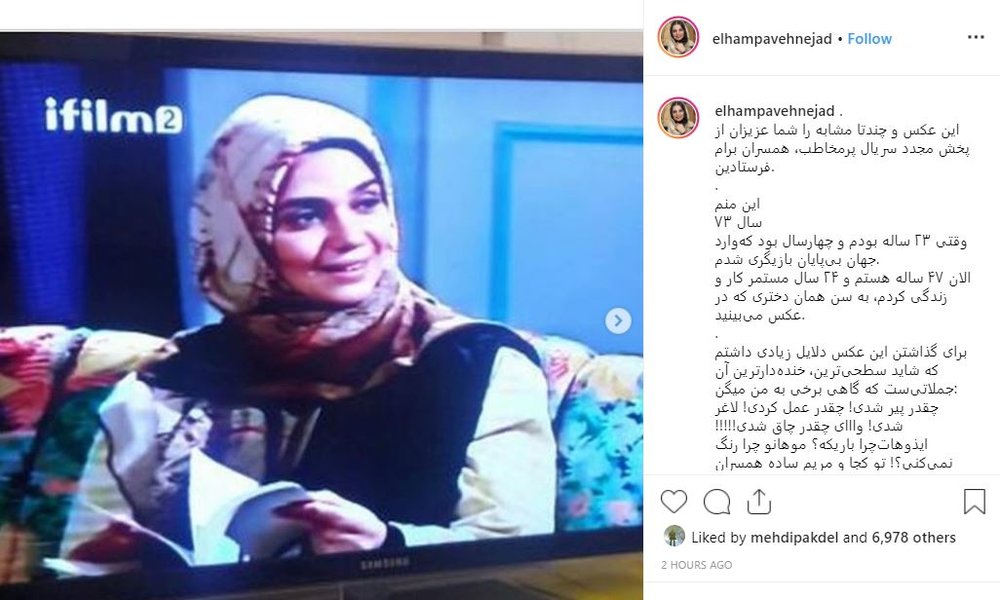به گزارش جی پلاس، الهام پاوه نژاد با انتشار تصاویری از خود در سریال «همسران» در اینستاگرام، درباره فعالیتهای هنریاش در طی این سالها نوشت: «این منم، سال ۷۳ وقتی ۲۳ ساله بودم و چهارسال بود کهوارد جهان بیپایان بازیگری شدم. الان ۴۷ ساله هستم و ۲۴ سال مستمر کار و زندگی کردم، به سن همان دختری که در عکس میبینید.