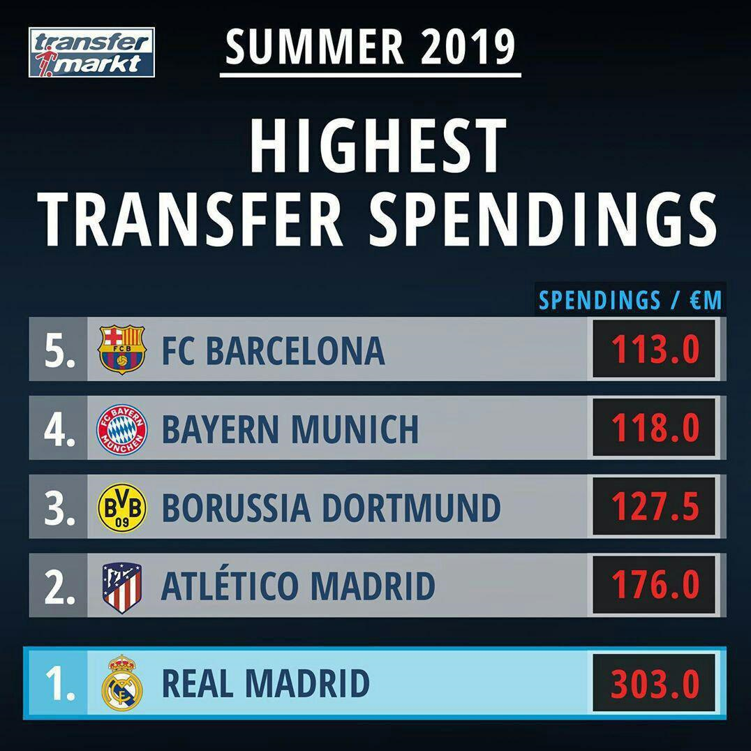 رئال مادرید تا به اینجای فصل نقل و انتقالات پرهزینه ترین تیم بوده است.