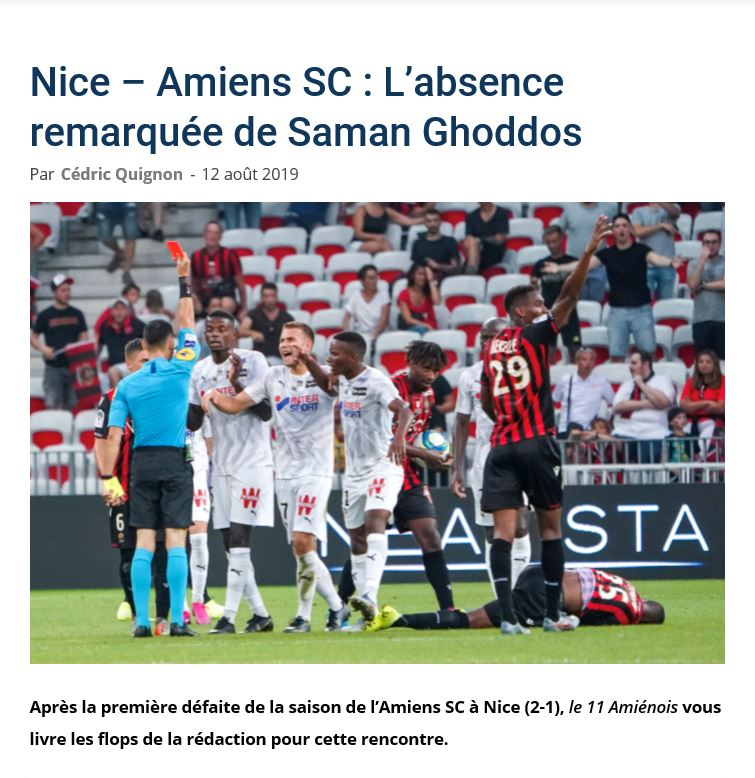 به گزارش جی پلاس، سایت «le11amienois.fr» فرانسه با اشاره به دیدار آمیان و نیس که با باخت 2 بر یک یاران سامان قدوس به پایان رسید از هافبک تیم ملی فوتبال ایران انتقاد کرد.