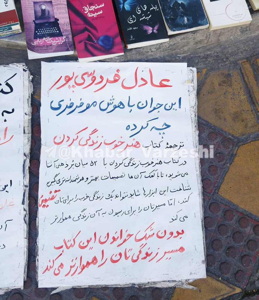 یک کتاب فروش خیابانی برای جلب نظر مخاطبان، تبلیغات جالبی را برای کتاب «هنر خوب زندگی کردن» با ترجمه عادل فردوسیپور انجام داده است.