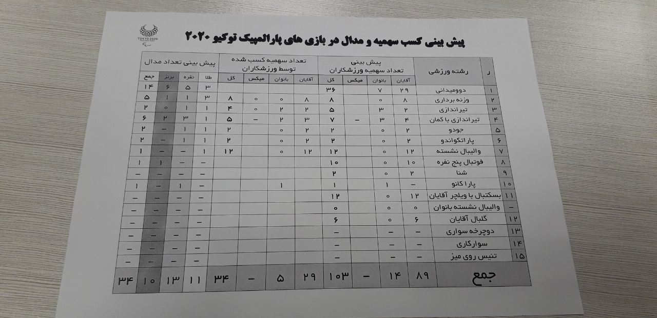 کمیته ملی پارالمپیک کشورمان تعداد سهمیه‌ها و مدال‌های ایران در 2020 توکیو را پیش بینی کرد.