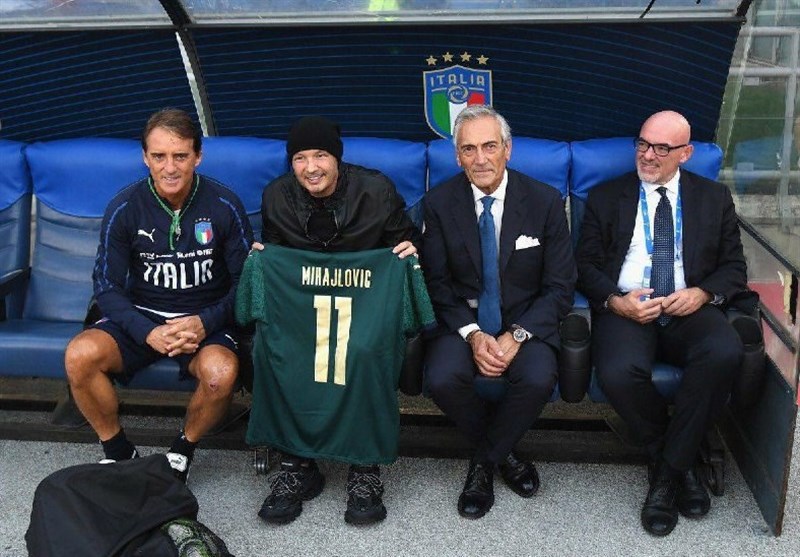 به گزارش جی پلاس، سینیشا میهایلوویچ امروز (شنبه) در محل تمرینات تیم ملی ایتالیا حضور پیدا کرد تا به بازیکنان این تیم برای مصاف امشبشان با تیم ملی یونان در مرحله انتخابی یورو 2020 روحیه بدهد. او مورد استقبال روبرتو مانچینی، سرمربی آتزوری قرار گرفت و یک پیراهن جدید تیم ملی ایتالیا (پیراهنی که آتزوری امشب قرار است مقابل یونان با آن به میدان برود) با نام خودش را دریافت کرد.