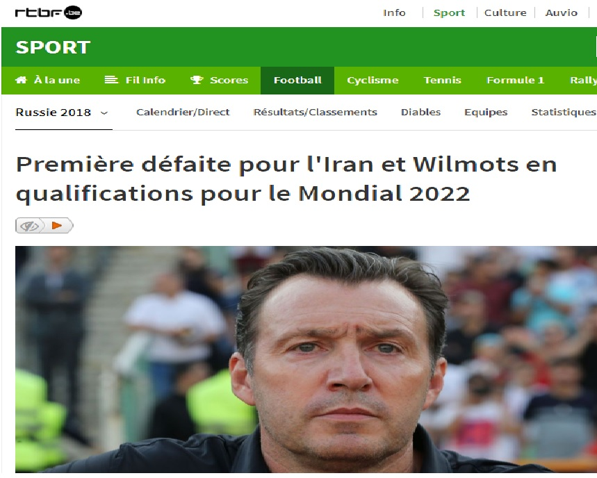 شبکه بلژیکی RTBF از باخت شب گذشته تیم ملی ایران مقابل بحرین به عنوان نخستین ناکامی ویلموتس در مسیر جام جهانی قطر یادکرد.