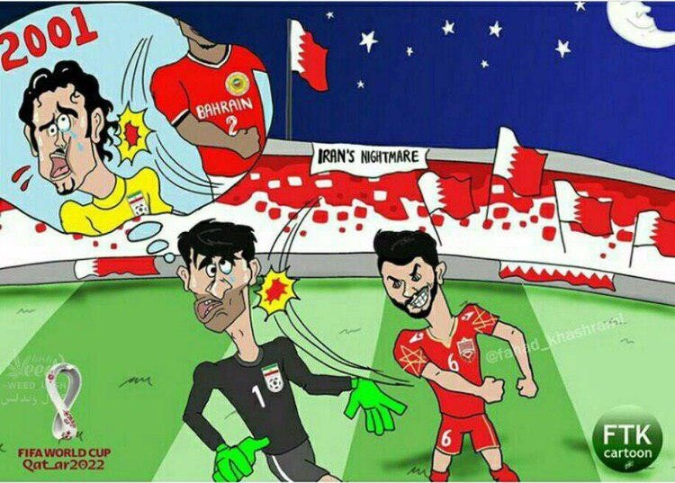 شکست ایران مقابل بحرین در انتخابی جام جهانی 2022 در منامه دستمایه تمسخر کارتونیست عربستانی شد و این شکست را با شکست سال 2001 تیم ملی یکی دانست.