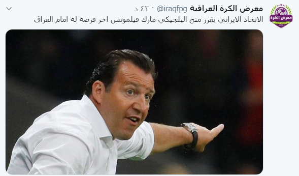 به گزارش جی پلاس،سایت «معرض الکره العراقیه» عراق در ادعایی عجیب نوشت: فدراسیون فوتبال ایران به  مارک ویلموتس، سرمربی خود  اعلام کرد که دیدار با عراق آخرین فرصت اوست.