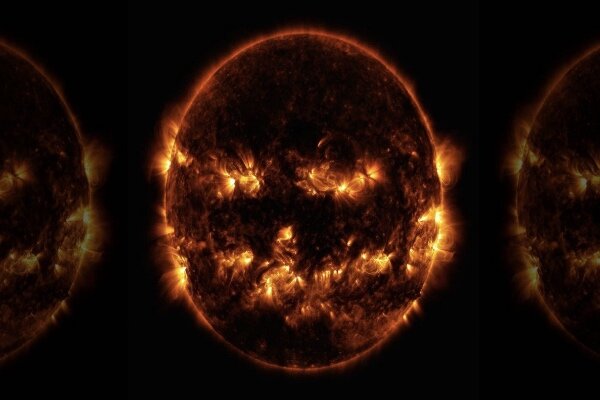 ناسا تصویری از خورشید منتشر کرده که در این تصویر خورشید شبیه صورتک ترسناک هالووین شده است!