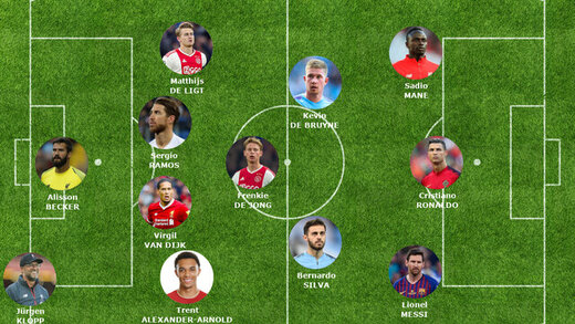 مدافعها: سرخیو راموس (اسپانیا - رئال مادرید)، ماتیس دلیخت (هلند-آژاکس و یوونتوس)، فیرجیل فاندایک (هلند - لیورپول)، آلسکاندر آرنولد (انگلیس- لیورپول)
