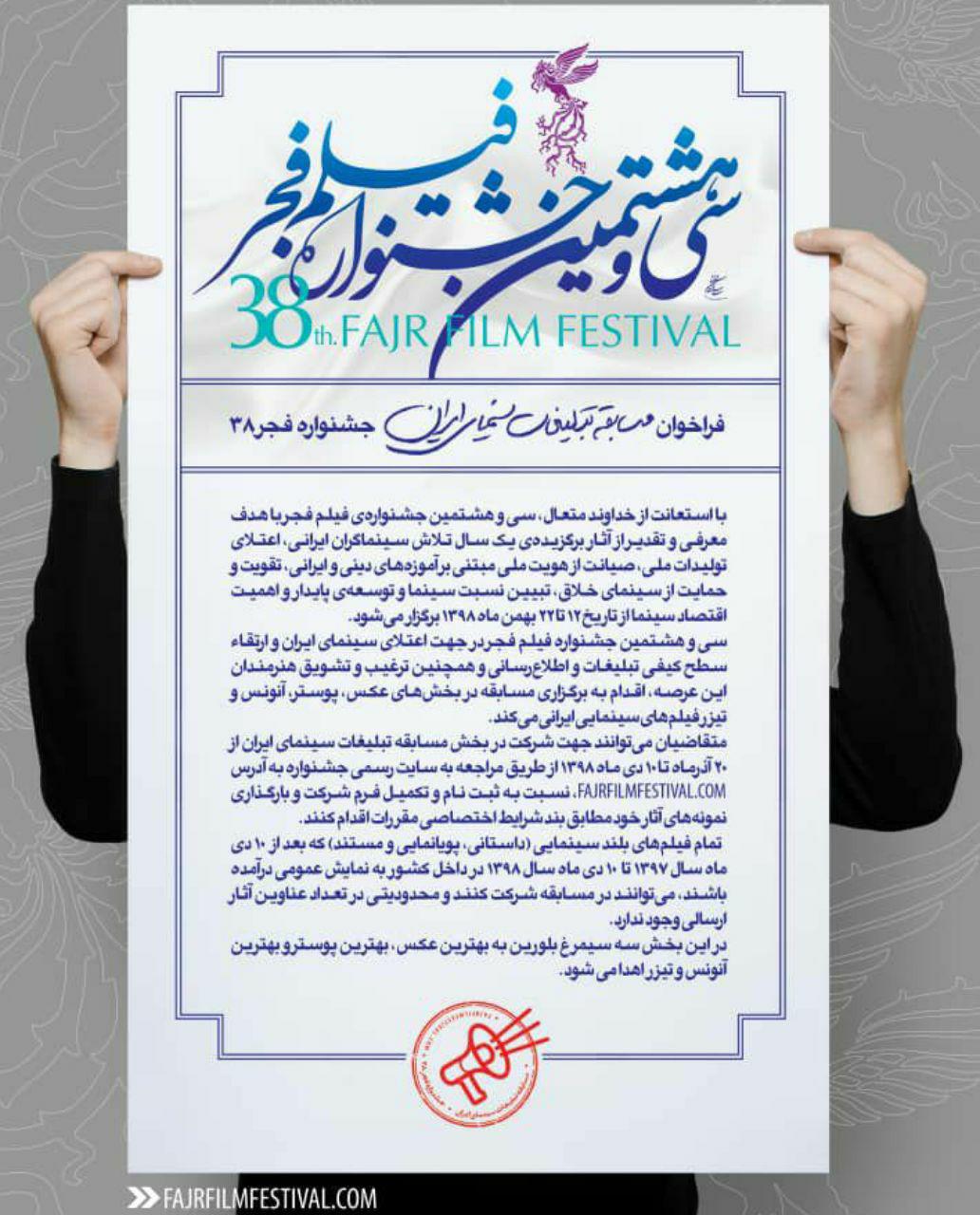 سی‌ و هشتمین جشنواره فیلم فجر در جهت اعتلای سینمای ایران و ارتقاء سطح کیفی تبلیغات و اطلاع‌رسانی و همچنین ترغیب و تشویق هنرمندان این عرصه، اقدام به برگزاری مسابقه در بخش‌های عکس، پوستر، آنونس و تیزر فیلم‌های سینمایی ایرانی می‌کند.