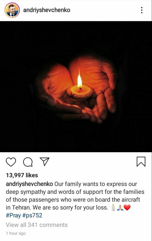 آندری شوچنکو، اسطوره فوتبال اکراین و ستاره سالهای نه چندان دور باشگاه میلان نسبت به حادثه هوایی امروز در تهران واکنش نشان داد.