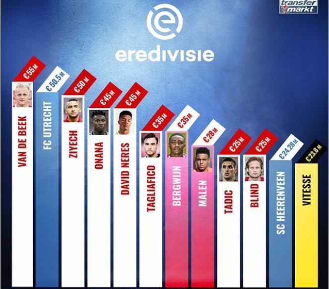 قیمت این بازیکن از کل تیم اوترخت بیشتر است. قیمت بازیکنان حاضر در تیم اوترخت 50.5 میلیون یورو اعلام شده است.