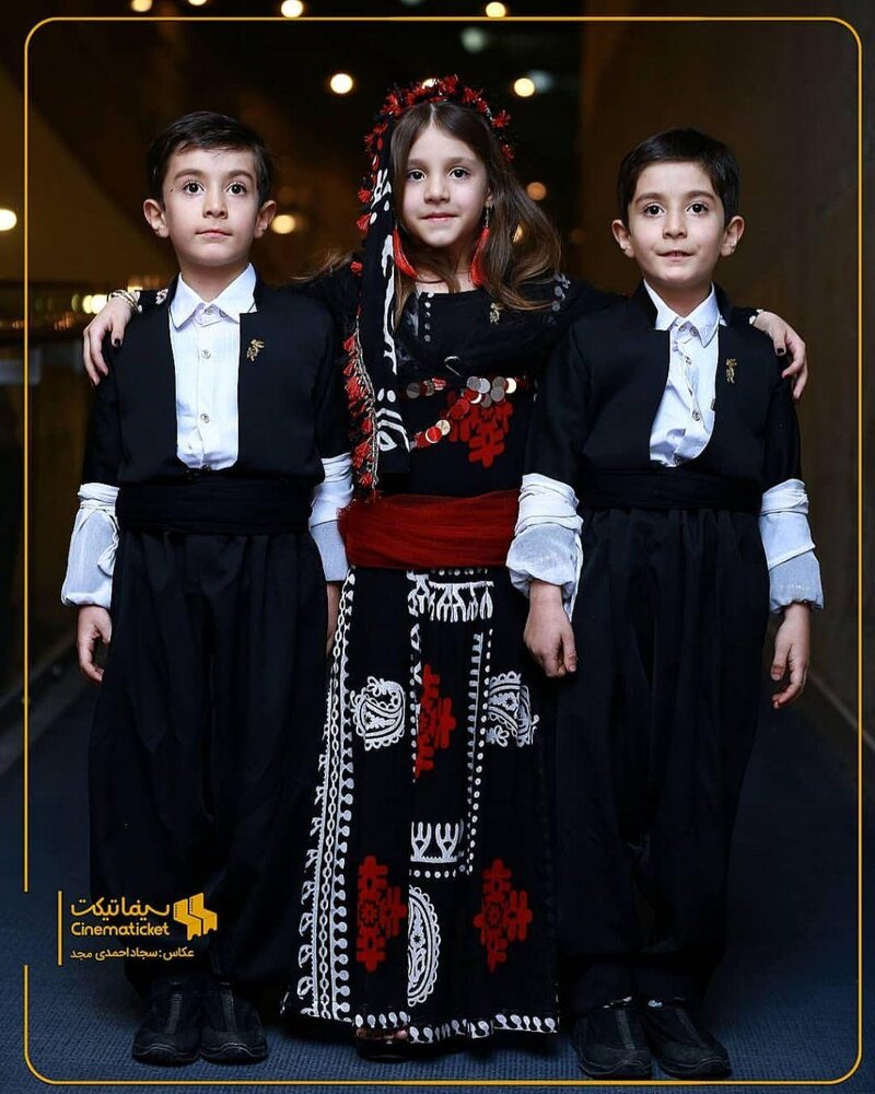 سه بازیگر خردسال فیلم «درخت گردو» ساخته محمدحسین مهدویان، به همراه خانواده و با پوشش محلی کردستان در پردیس ملت حاضر شده بودند.