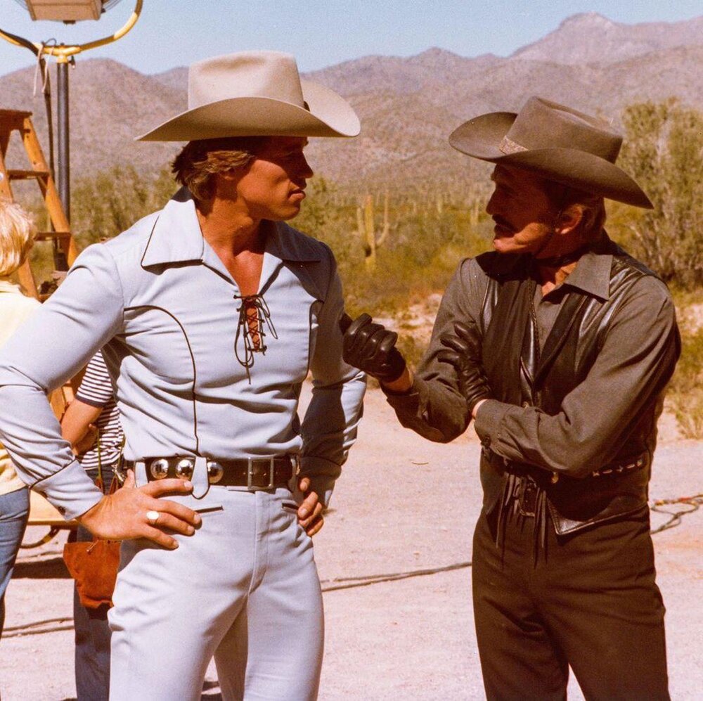تصویر فوق کرک داگلاس و آرنولد شوارتزنگر را پشت صحنه فیلم «شرور» نشان می‌دهد. این فیلم به کارگردانی هال نیدهام سال ۱۹۷۹ اکران شد و از نخستین گام‌های آرنولد در مسیر تبدیل شدن به یک ستاره سینمایی بود.