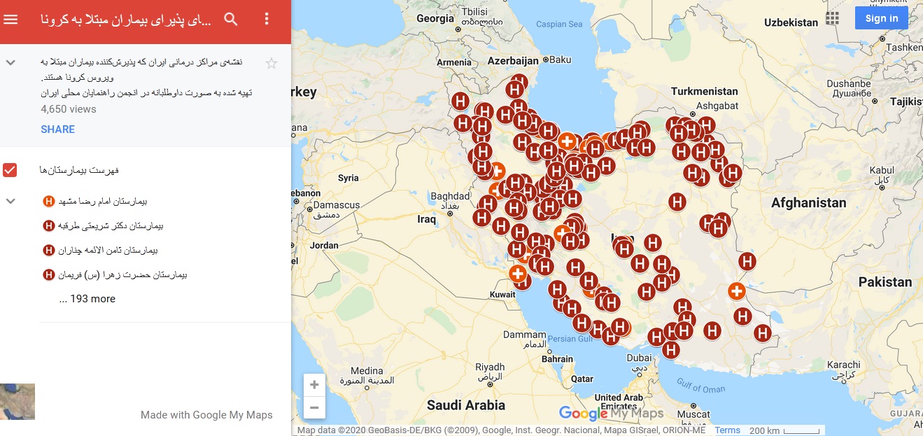 گوگل بیمارستان های پذیرنده بیماران کرونا در ایران را روی نقشه مشخص کرد.