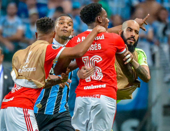 به گزارش جی پلاس؛ دیدار کلاسیک پورتو آلگره بین دو تیم گرمیو و اینترناسیونال با درگیری میان بازیکنان پایان یافت. این اتفاق در سه دقیقه مانده به پایان بازی پس از برخورد مویسس و پهپه با هم رخ داد. پس از ۱۰۶ دقیقه بازی دو تیم به تساوی بدون گل دست یافتند اما فرناندو راپایینی، داور آرژانتینی مجبور شد هشت بازیکن را اخراج کند. سه بازیکن و یک بازیکن نیمکت نشین از هر دو تیم کارت قرمز دریافت کردند. به احتمال فراوان پس از گزارش داور هر دو باشگاه جریمه خواهند شد.