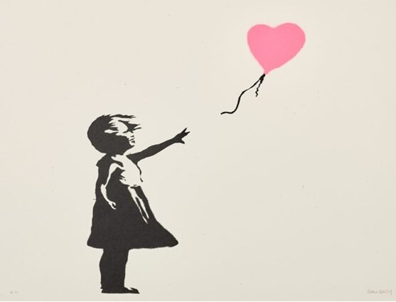 از مهمترین آثار حاضر در این حراجی آنلاین میتوان به دو نسخه از نقاشی «دختر و بادکنک» این هنرمند اشاره کرد. نسخهای از این نقاشی که بادکنک آن صورتی رنگ است به قیمت ۳۷۵,۰۰۰ پوند فروخته شد و نسخهی دیگر این نقاشی که بادکنک آن قرمز رنگ است نیز به قیمت ۱۰۶,۲۵۰ پوند فروخته شد.