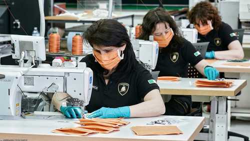 ماسک ها توسط کارمندان بخش تودوزی و سفارشی سازی سوپراسپرت های لامبورگینی آماده می شود و براساس اطلاعات ارائه شده؛ این خط تولید ظرفیت تحویل روزانه 1000 ماسک را دارد.