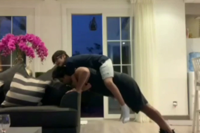 فرهاد مجیدی فیلمی از تمرین کردنش در قرنطینه به همراه پسرش امیربردیا منتشر کرد.