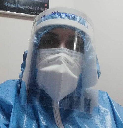 فیروزه سلطان محمدی ورزشکار پارادوومیدانی که به عنوان پرستار داوطلب در خط مبارزه با بیماری کرونا فعالیت می‌کند.