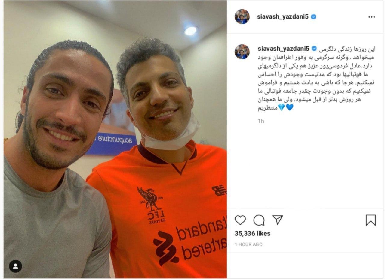 سیاوش یزدانی در تمجید از عادل فردوسی پور عکسی در صفحه اینستاگرام خود منتشر کرد.