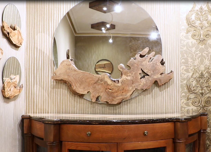 وجود یک اینه و یا تابلوی هنری در بالای میز کنسول در بهتر شدن چیدمان کمک زیادی می کند. برای استافده از این ترفند نیز بهتر است حتما از این وسایل استفاده نمایید. همان طور که در تصویر بالا می بینید، آینه مدرن چوبی گزینه مناسبی برای تزیین میز کنسول چوبی شما خواهد بود.