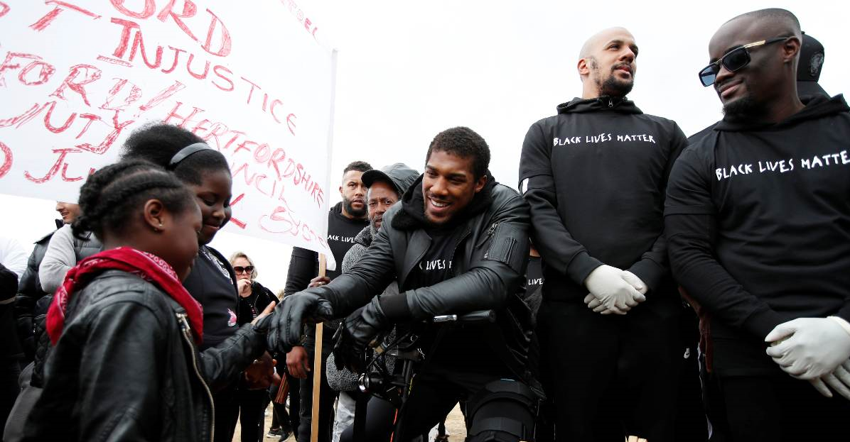 آنتونی جاشوا قهرمان سنگینوزن بوکس جهان در اعتراض به نژادپرستی در تظاهرات شرکت کرد.