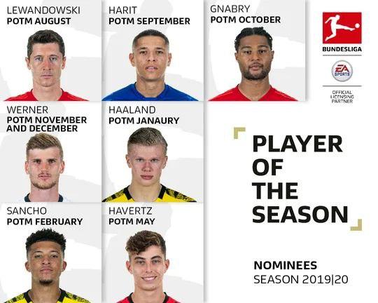 رابرت لواندفسکی و سرژ گنابری از بایرن مونیخ، ارلینگ هالند و جیدون سانچو از دورتموند، تیمو ورنر از لایپزیگ، امین هریت از شالکه و کای هاورتس از بایرلورکوزن نامزدهای دریافت این جایزه هستند.