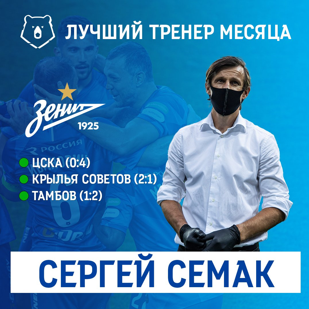 سازمان لیگ برتر روسیه سرمربی زنیت را به عنوان مربی ماه انتخاب کرد.