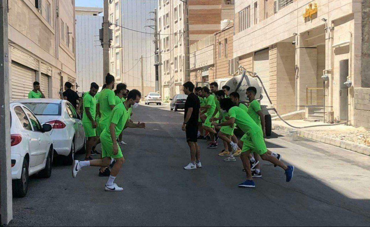 بازیکنان تیم فوتبال پارس جنوبی امروز و برای دیدار با استقلال تهران در خیابان تمرین کردند.