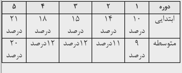 ـ ماده (۶) - جدول درصد حقوق ثابت و فوقالعادههای مستمر دوره ابتدایی و دوره متوسطه از یکم فروردین ماه ۹۹ به شرح زیر تعیین میشود:
