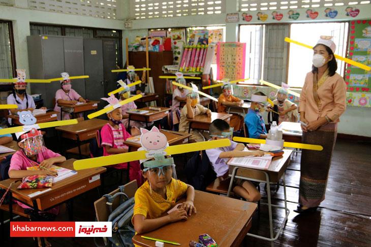 امروز تصویری از تشکیل کلاس های ابتدایی در بانکوک منتشر شد. دانش آموزان مدرسه ای در تایلند با کلاه هایی که فاصله فیزیکی آن ها را تعیین می کند در کلاس درس حضور پیدا کردند.