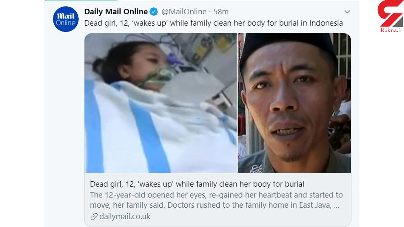 این دختر 12 ساله اندونزیایی در بیمارستان محمد صالح به دلیل عوارض ناشی از دیابت فوت شد و ساعت 7 خانواده وی را برای تدفین به خانه برده بودند که زنده شده و حرکت کرد اما
