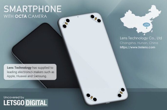 طبق گزارش وب سایت «لتس گو دیجیتال»  شرکت چینی «لنز تکنولوژی» اخیرا حق امتیاز اختراع جدیدی برای دستگاهی با ۸ دوربین پشتی ثبت کرده است. این شرکت چینی در حوزه تولید موبایل شناخته شده نیست اما برای اپل، سامسونگ و هواوی تجهیزات فراهم می کند. همچنین لنز تکنولوژی نمایشگر برای اپل واچ تهیه می کند.