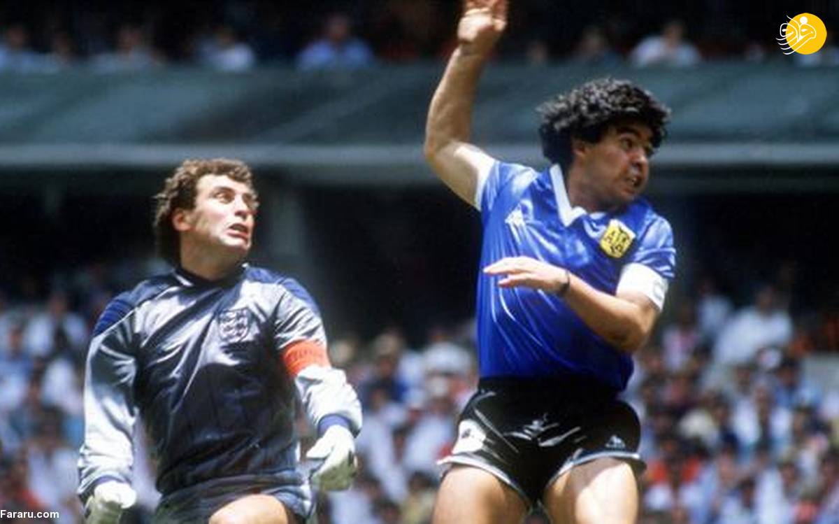 بی‌گمان مشهورترین حرکت فوتبالی مارادونا، گلی بود که در جام‌جهانی ۱۹۸۶ مکزیک با دست وارد دروازه انگلستان کرد. بعد از آن بازی استیو هاج بازیکن تیم ملی انگلستان پیراهنش را با مارادونا عوض کرد و حالا، بعد از مرگ مارادونا این لباس حکم یک گنج را برای او پیدا کرده است.