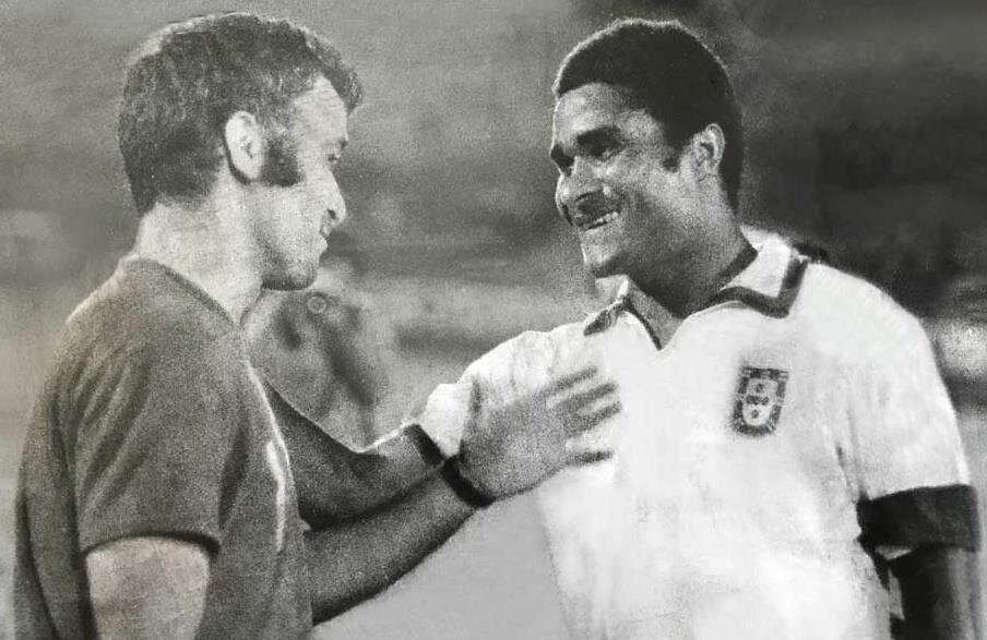 عکسی قدیمی از مرحوم جعفر کاشانی با اوزه بیو فوق ستاره فوتبال پرتغال در سال 1351 در جام جهانی دیدار تیم های ملی ایران و پرتغال منتشر شد.