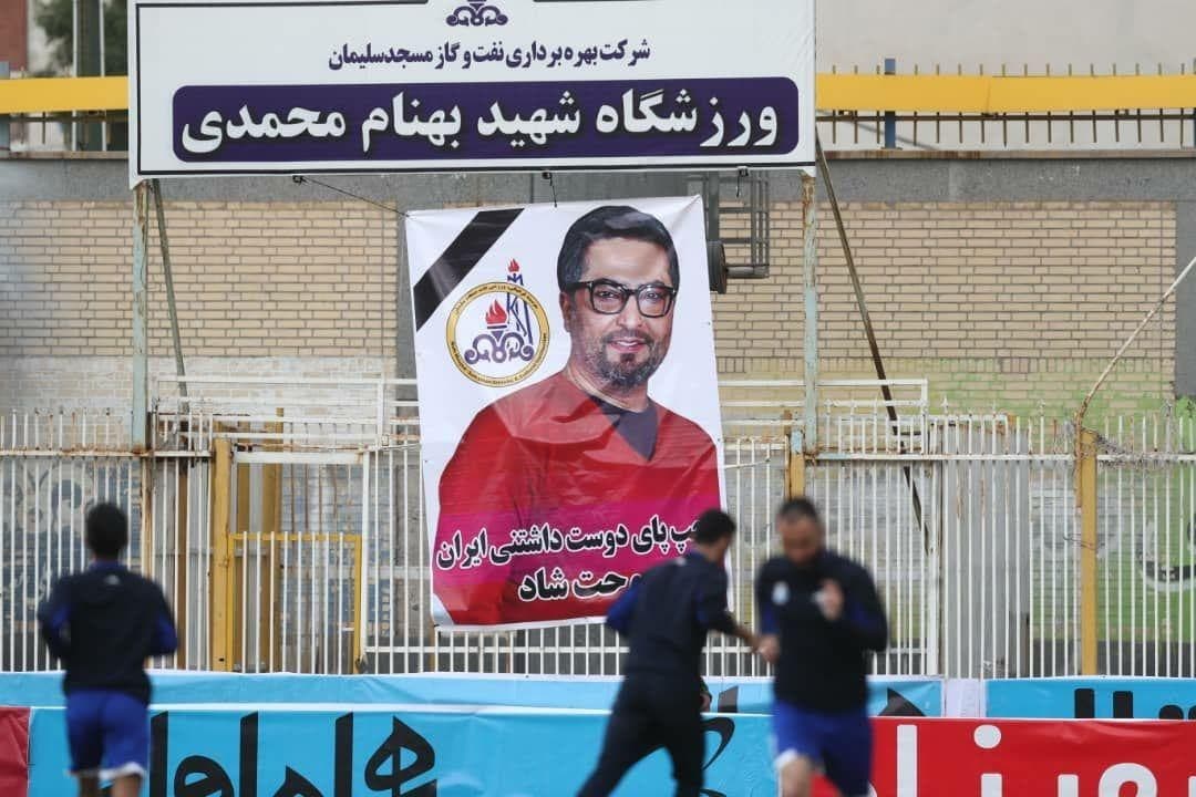 تصویری از مهرداد میناوند در داخل ورزشگاه شهید بهنام محمدی مسجد سلیمان قبل از آغاز دیدار استقلال و نفت نصب شده است.