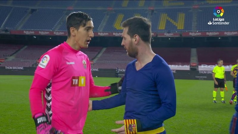 جی پلاس؛ در پایان بازی امشب بارسا و الچه، تعویض پیراهن بین لیونل مسی و دروازه بان الچه صحنه جالبی را رقم زد.