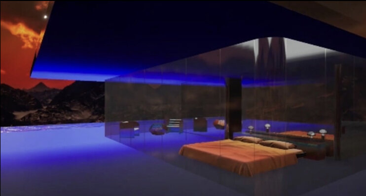 به نظر می‌رسد این خانه روی قله‌ای در مریخ قرار گرفته و ساکنان می‌توانند چشم اندازی از سیاره را تماشا کنند.