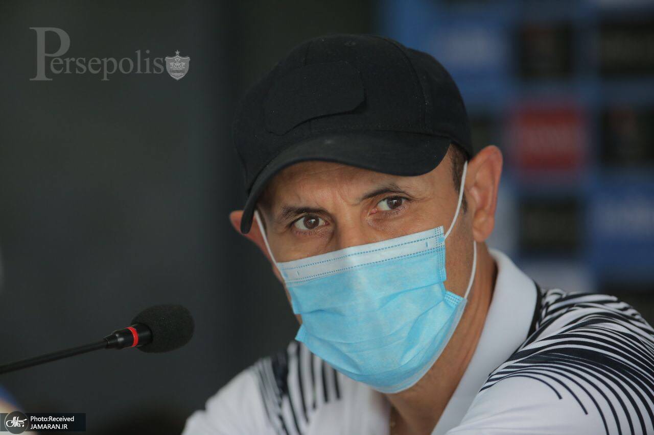 جی پلاس، سرمربی تیم فوتبال پرسپولیس برای حضور در نشست خبری قبل از بازی با الوحده امارات و جلوگیری از جریمه 10 هزار دلاری مجبور به پوشش برند کلاه روی سر خود شد