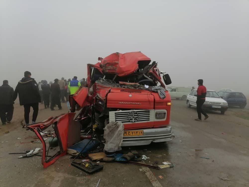 دستغیب گفت: محور هلشی به ماهیدشت محور فرعی است که صبح امروز مه گرفتگی داشته و راننده کامیون بر اثر مه دید کافی نداشته و از پشت با مینی بوس برخورد می کند.