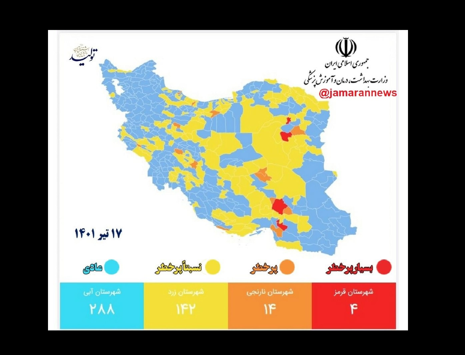 بر خلاف هفته های اخیر که تعداد شهرهای با وضعیت قرمز و نارنجی در کشور، صفر بود در حال حاضر ۴ شهر در وضعیت قرمز و ۱۴ شهر در وضعیت نارنجی قرار گرفته اند.