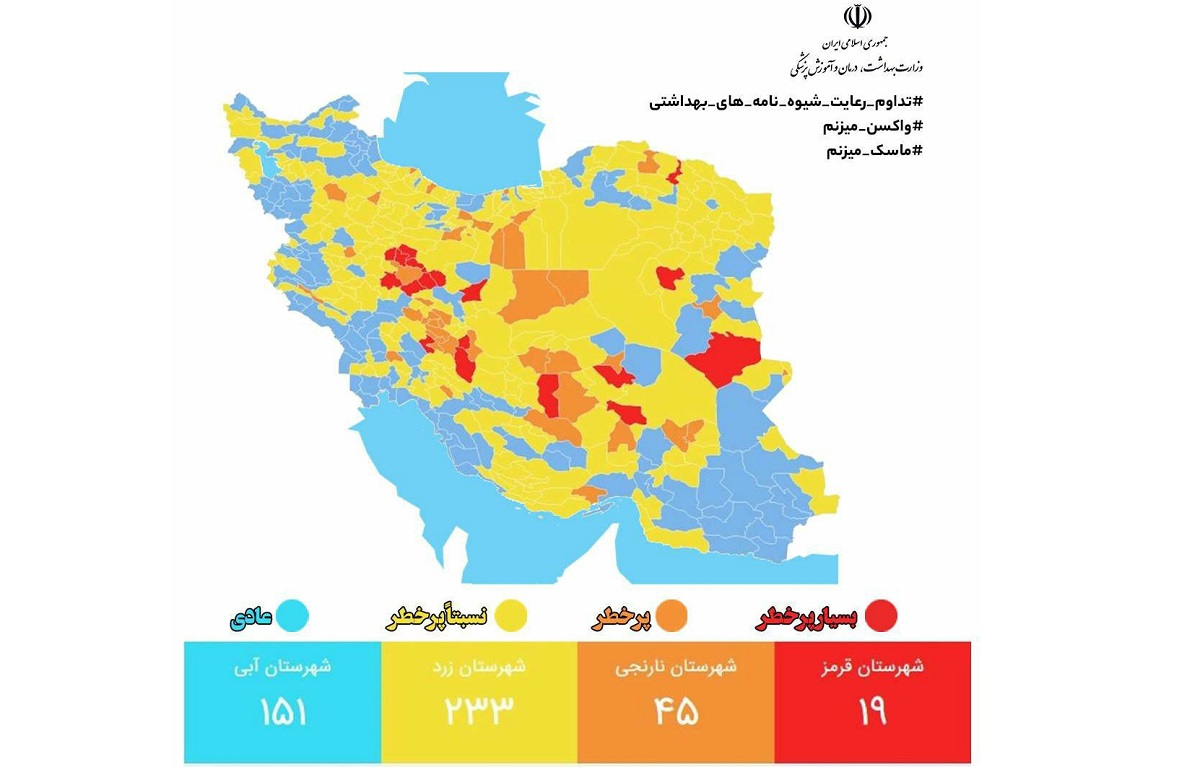 همچنین تعداد شهرهای با وضعیت زرد از ۱۹۴ به ۲۳۳ و تعداد شهرهای با وضعیت آبی از ۱۹۳ به ۱۵۱ شهر رسید.