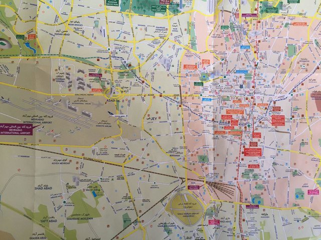 بزرگراه همت مثل پنج سال پیش است و مسافرانی که از این نقشه استفاده میکنند، باید آن را کنار بگذارند و به تابلوهای نصبشده در اتوبان توجه کنند. خیابانهای شهری این نقشه هم هنوز همان هویت و نام چهار - پنج سال پیش را دارند. هرچند برای جبران این کاستیها، نقشه کوچکی از خطوط متروی شهری و راههای اصلی در گوشهای چاپ شده که چندان هم به کار نمیآید، چون همان نقشه مترویی است که در ایستگاهها و قطار وجود دارد. نقشه راههای اصلی هم که خیلی کلی نمایش داده شده و فقط خطوط قرمزی در آن دیده میشود که از مبدأیی به مقصدی میرسد، بدون آنکه نام و حتی جاذبههای مبدأ و مقصد آن مشخص شده باشد.