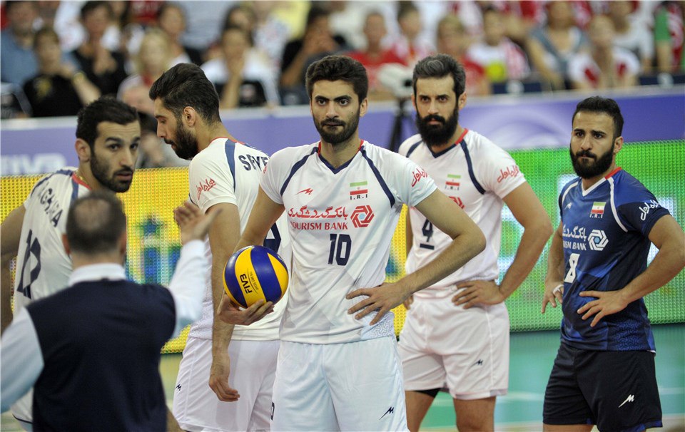 ایران ست نخست را با ترکیب سعید معروف، امیر غفور، سیدمحمد موسوی، مسعود غلامی، میلاد عبادیپور، فرهاد قائمی و مهدی مرندی آغاز کرد.