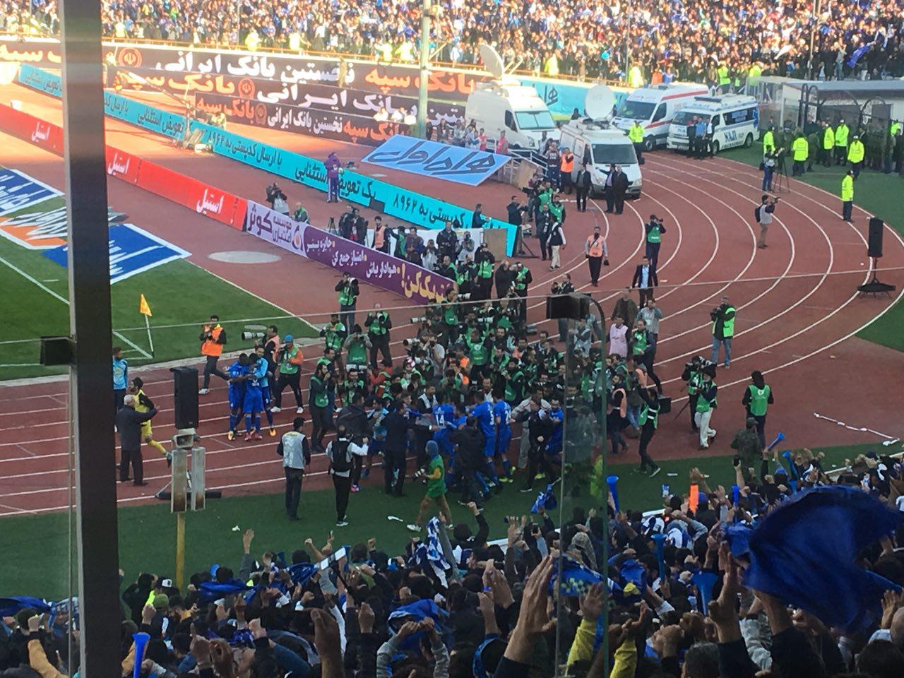 در ادامه عکاسان و نیمکت نشینان استقلال هم به او پیوستند منجر به شلوغی بیش از حد زمین شد.