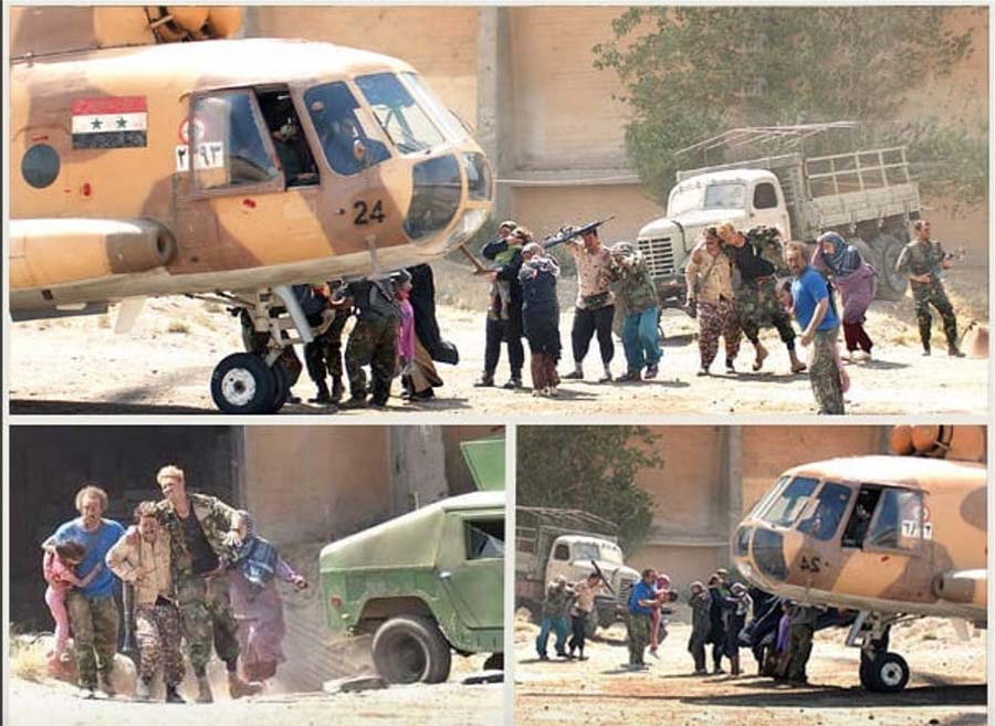 به گزارش جی پلاس، عکسی از قسمت آخر سریال پایتخت را مشاهده می کنید. طبق عکس‌های منتشر شده از پشت صحنه سریال پایتخت، هلیکوپتر سوری وارد عمل شده و خانواده نقی را از دست داعش نجات می دهد.