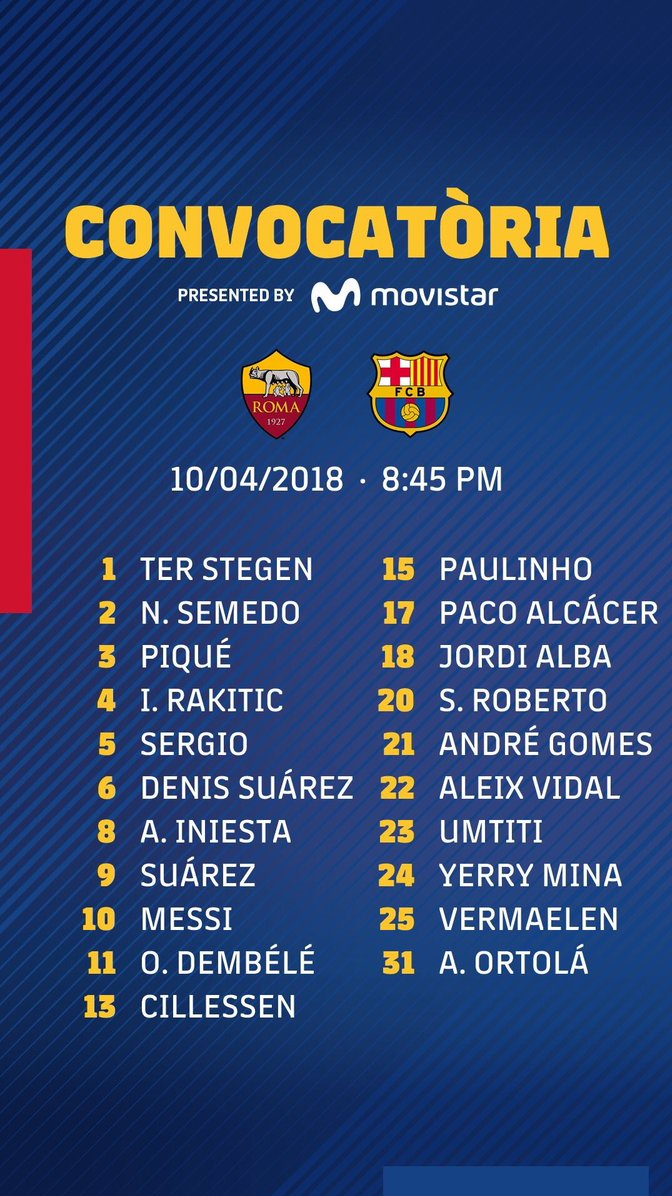 لیست بازیکنان بارسلونا برای دیدار با رم در لیگ قهرمانان اروپا اعلام شد.