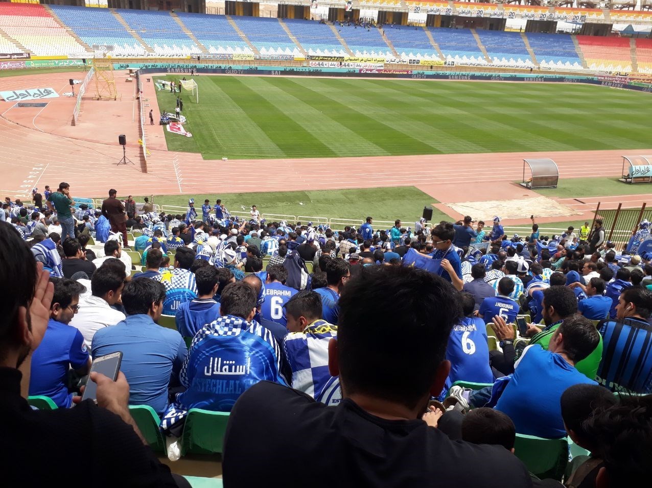 * همچنین هواداران استقلال در ضلع شمال غربی و نزدیک به نیمکت سپاهان مستقر شدند و پیش از آغاز بازی ظرفیت اختصاص یافته کاملا پر شده بود.