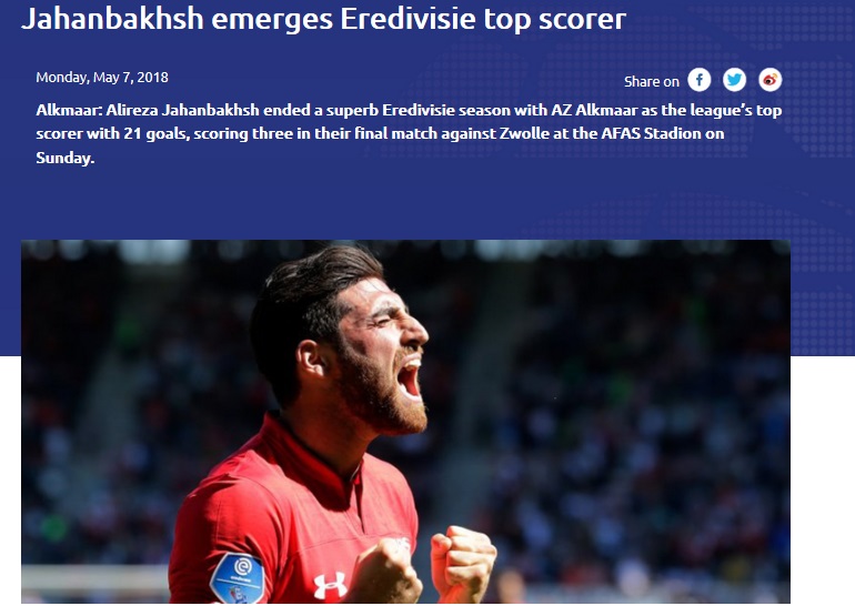 درخشش فوق العاده و آقای گلی علیرضا جهانبخش در لیگ هلند با تعریف و تمجید سایت کنفدراسیون فوتبال آسیا همراه شد.